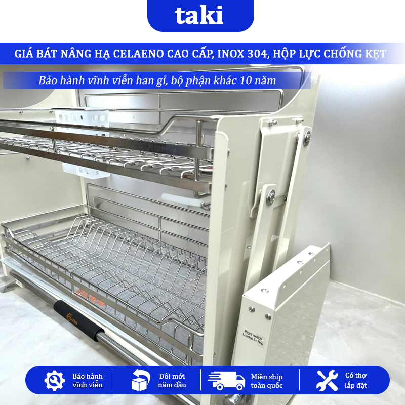 ✪ Giá bát nâng hạ inox không 304 nan dẹt CELAENO là một lựa chọn tuyệt vời cho người tiêu dùng đang tìm kiếm sự kết hợp giữa tính thẩm mỹ, độ bền và tính tiện lợi. Với chất liệu inox 304 chất lượng cao, sản phẩm này mang lại không chỉ tính năng chống gỉ mà còn sự sang trọng và hiện đại cho không gian bếp của bạn.