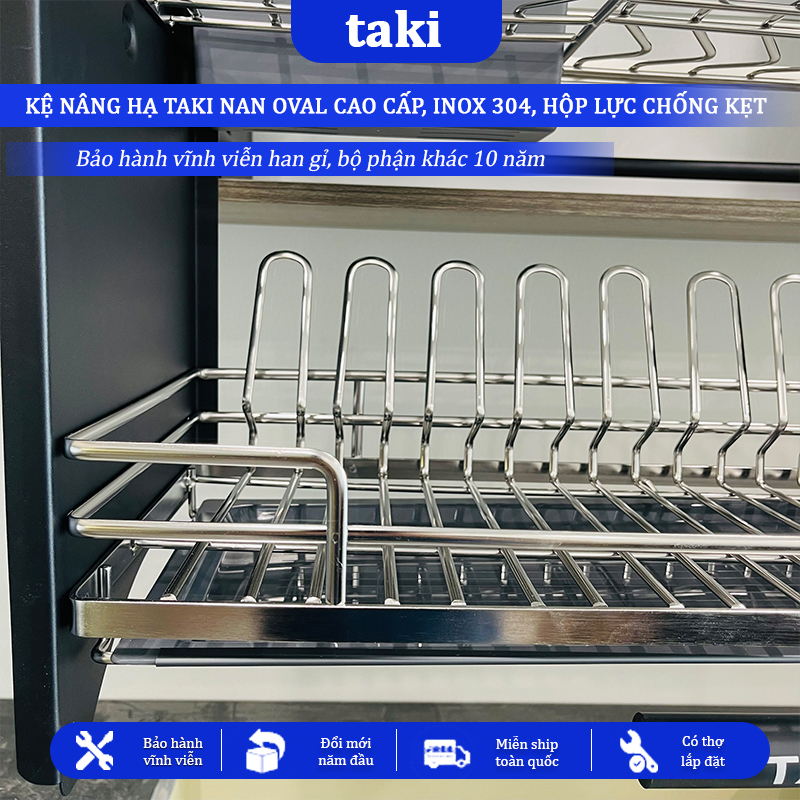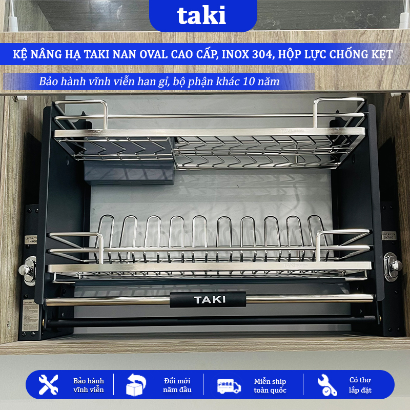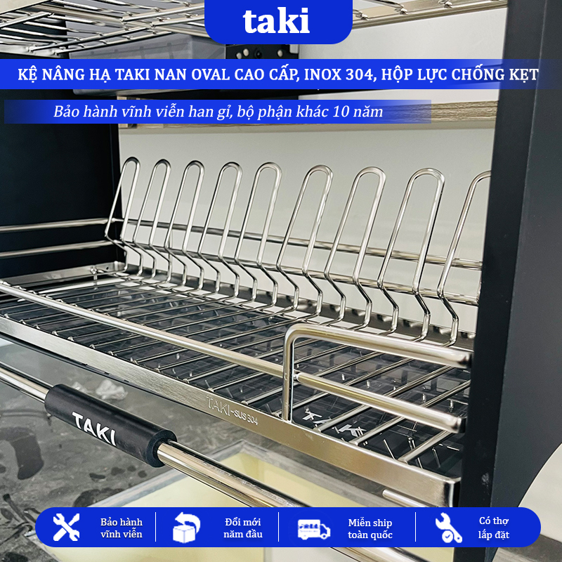 - Sở hữu chức năng nâng lên hạ xuống độc đáo. Giá bát di động nan oval của thương hiệu TAKI là một trong những phụ kiện được rất nhiều khách hàng lựa chọn hiện nay. Với form dáng manh mẽ, thanh thoát sẽ làm cho không gian bếp của bạn trở nên sang trọng và hiện đại