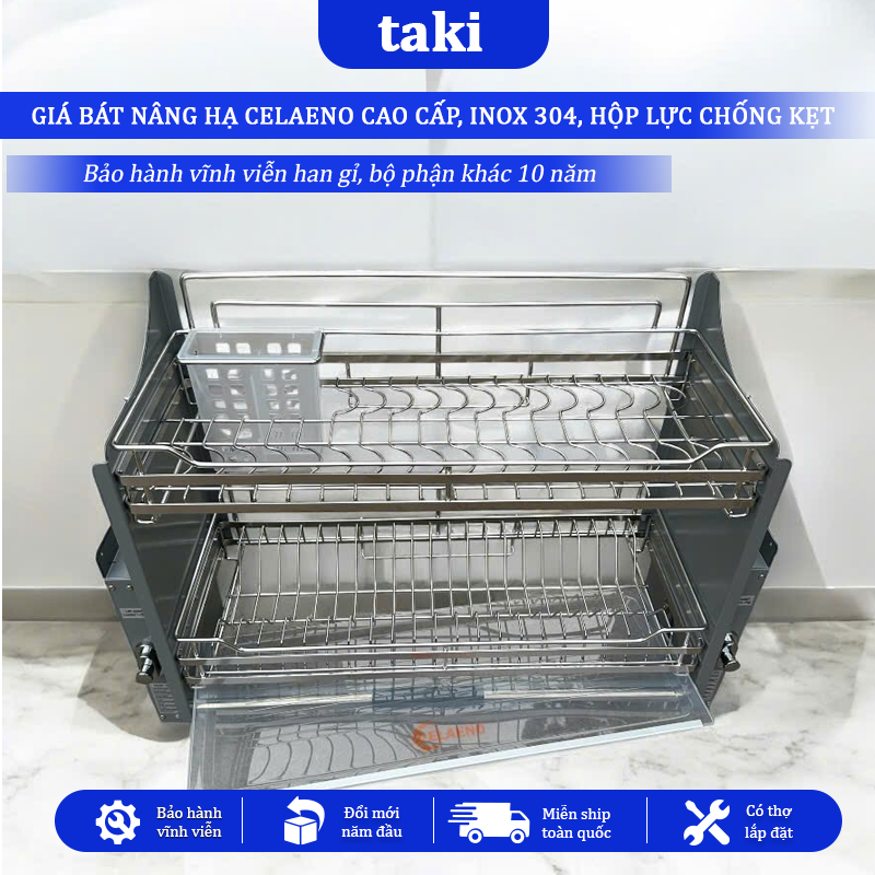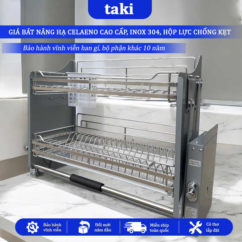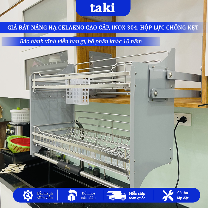 ✪ Giá bát nâng hạ inox không 304 nan dẹt CELAENO là một lựa chọn tuyệt vời cho người tiêu dùng đang tìm kiếm sự kết hợp giữa tính thẩm mỹ, độ bền và tính tiện lợi. Với chất liệu inox 304 chất lượng cao, sản phẩm này mang lại không chỉ tính năng chống gỉ mà còn sự sang trọng và hiện đại cho không gian bếp của bạn.
